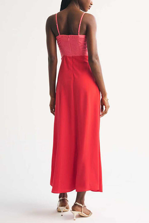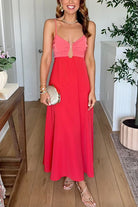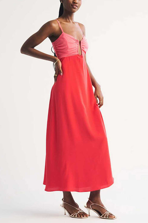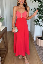 Spaghetti Strap Color Block Zipper Back Maxi Dress