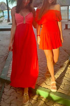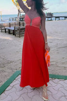 Elegant spaghetti strap maxi dress featuring a striking color block design and convenient zipper back closure. Crafted from a comfortable cotton-polyester blend, this versatile piece transitions seamlessly from day to evening wear. The flowing silhouette flatters all body types while the contrasting color blocks add modern visual interest. Perfect for special occasions, casual outings, or any time you want to feel polished and put-together.?