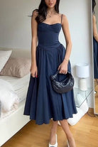 Heididress Spaghetti Strap Pocketed Corset Swing Midi Dress