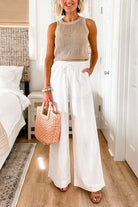 Heididress Drawstring Waist Wide Leg Cotton Linen Pants