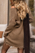 Drop Shoulder Pocketed Fringe Mini Sweater Dress