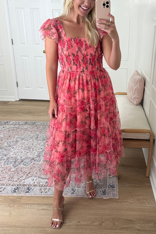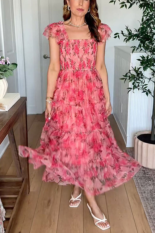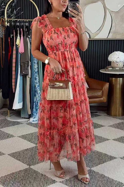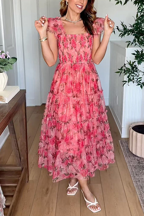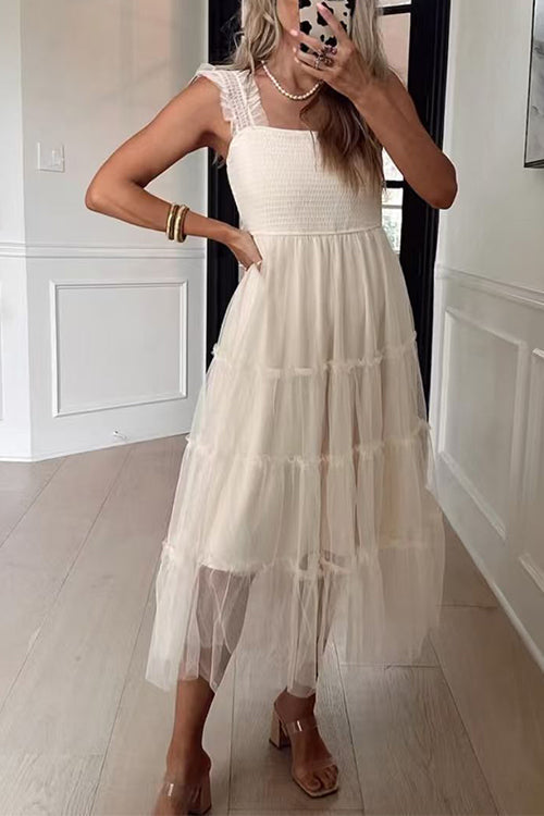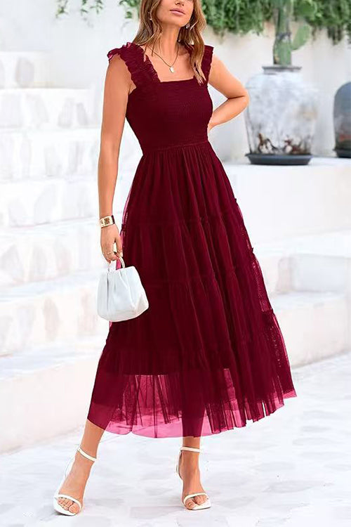 Square Neck Sleeveless Ruffle Tiered Midi Dress