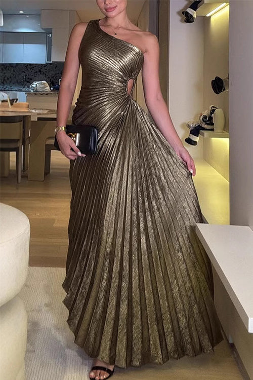 Heididress One Shoulder Sleeveless Cut Out Waist Pleated Maxi Dress