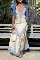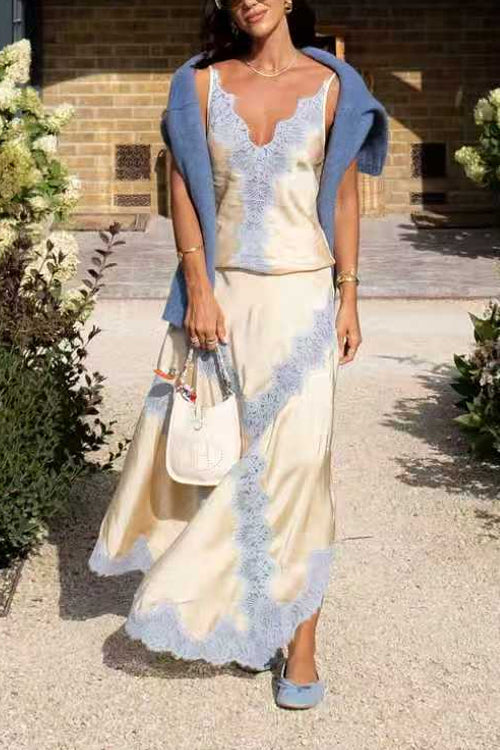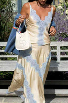 Heididress Adjustable Strap V Neck Lace Trim Satin Top