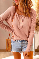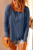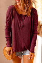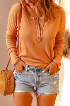 Heididress Solid Buttons Long Sleeve Waffle T-shirt