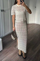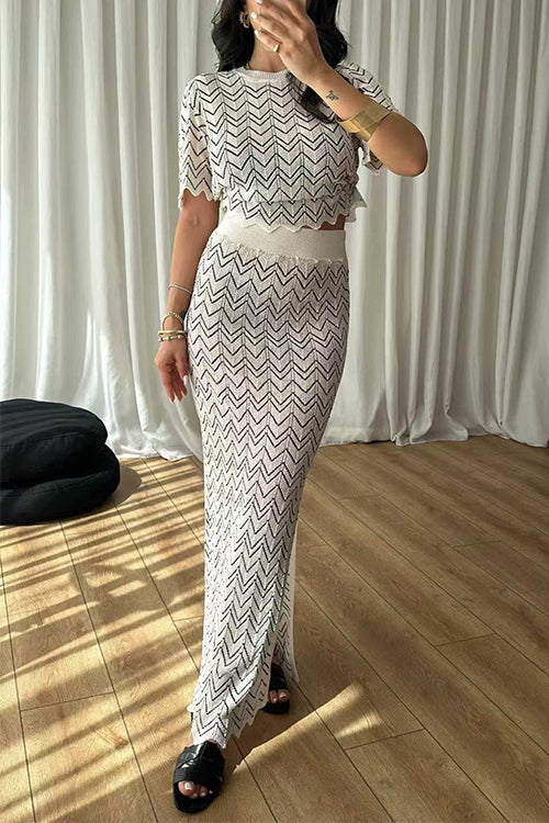 Transform your everyday style with this captivating crewneck top showcasing a mesmerizing zigzag pattern that catches the eye. Short sleeves deliver ideal breathability and comfort, while the relaxed crew neckline works with virtually any bottoms in your closet. This patterned essential bridges the gap between basic and bold¡ªsophisticated enough for casual outings, yet playful enough to express your personality. Whether layered under jackets or worn solo, it's the versatile piece that effortlessly elevates your look. Add this modern staple to your collection and enjoy endless styling possibilities.