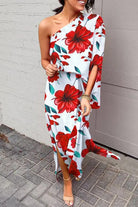 Heididress One Shoulder Waisted Side Split Printed Dress