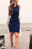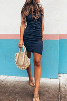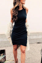 Heididress Solid Ruched Sheath Sleeveless Dress