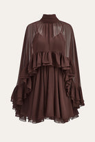 Chic High Neck Sheer Ruffle Hem Cape Mini Dress