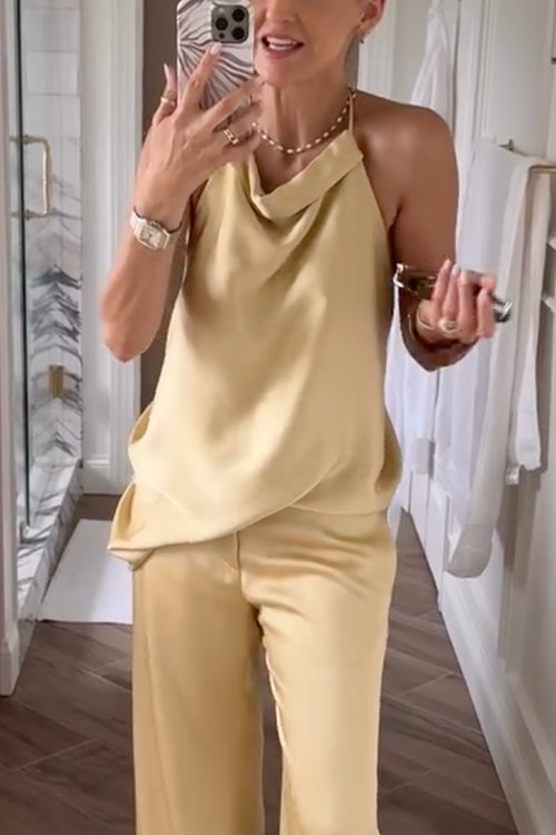 Heididress Halter Sleeveless Open Back Satin Top