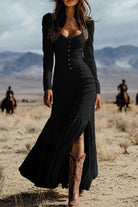 Heididress U Neck Buttop Up Long Sleeves Ruffle Slit Maxi Dress