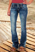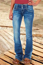 Heididress Button Down Bell Bottom Jeans with Pockets