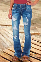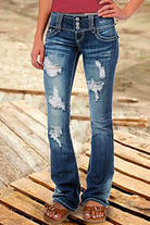 Heididress Button Down Distressed Ripped Jeans with Pockets