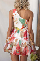 One Shoulder Sleeveless Floral Print Ruffle Layered Mini Dress