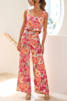 Heididress Floral Printed Square Collar Crop Tank Top Wide Leg Pants Set