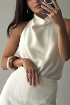 Elevate your style with Heididress's exquisite sleeveless satin top, a wardrobe essential that radiates sophistication. The striking halter and cowl neckline combination creates an alluring neckline that flatters while maintaining an air of refined elegance. Luxuriously crafted from premium satin, this piece drapes gracefully and catches light beautifully, adding dimension to any outfit. Perfect for professional environments or special occasions, it pairs effortlessly with everything from crisp blazers to flowing skirts. Own a versatile investment piece that transforms your look with understated glamour and timeless appeal.