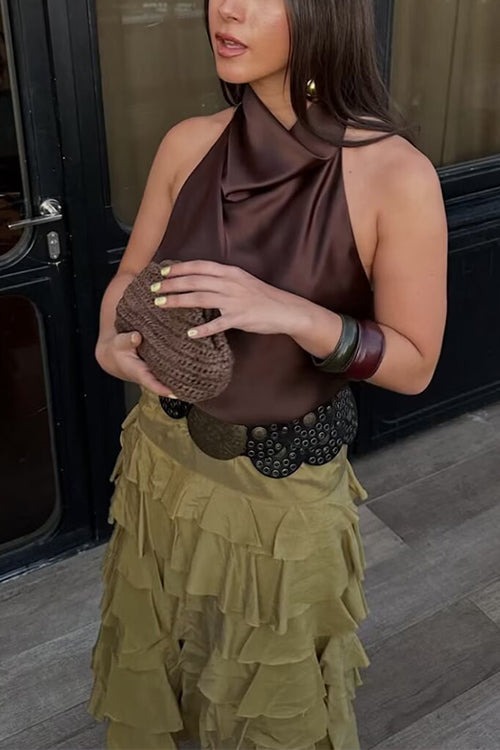 Heididress Chic Halter Cowl Neck Sleeveless Satin Top