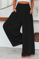 Heididress Smocked Elastic Waist Pleated Wide Leg Pants