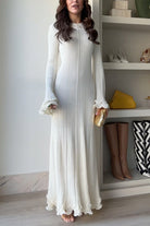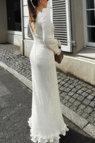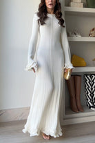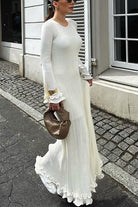Heididress Bell Sleeves Back Lace-up Ruffle Trim Maxi Dress