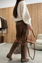 High Rise Satin Splice Lace Maxi Skirt