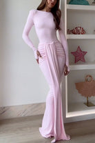Long Sleeves Draped Front Bodycon Maxi Dress